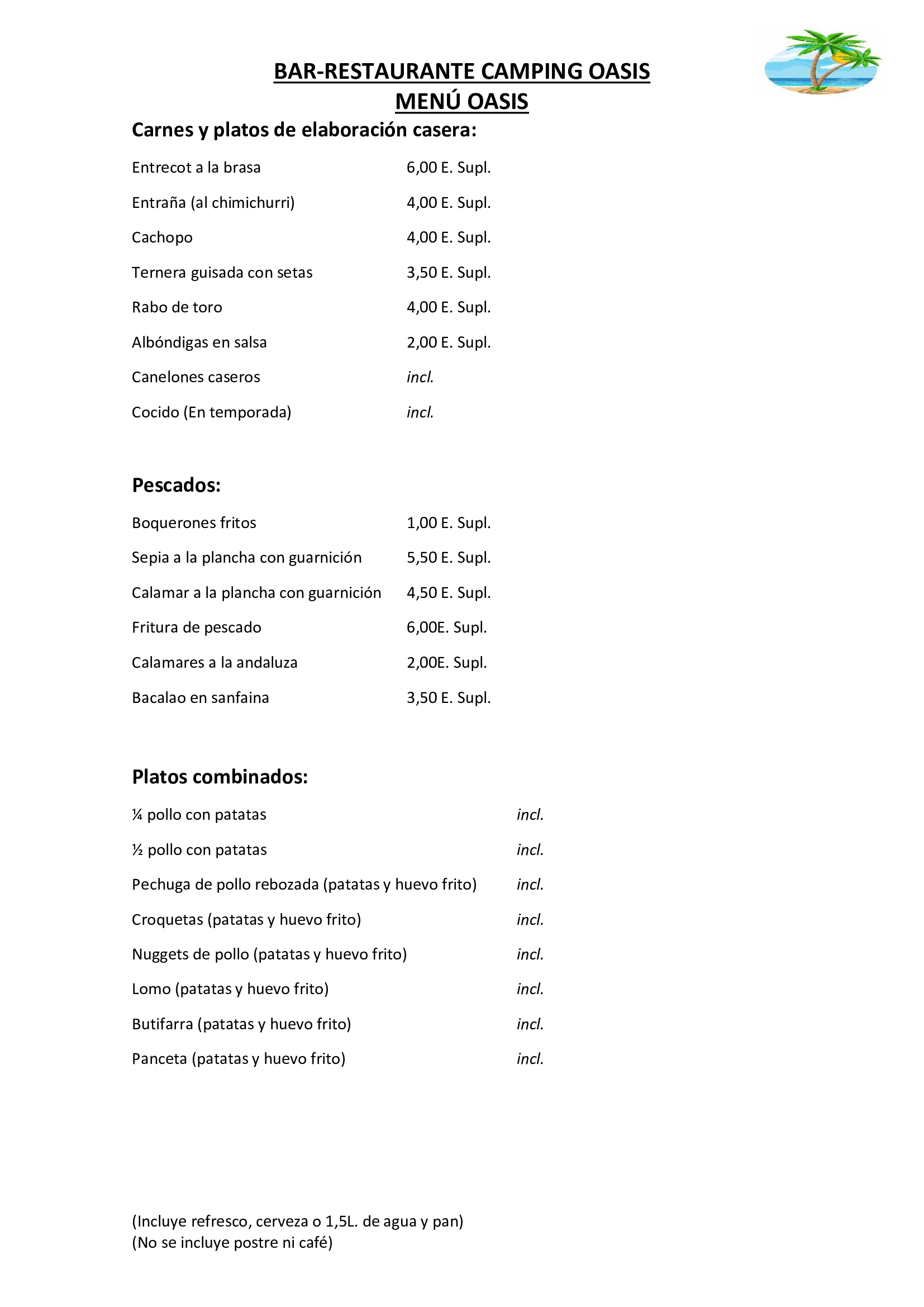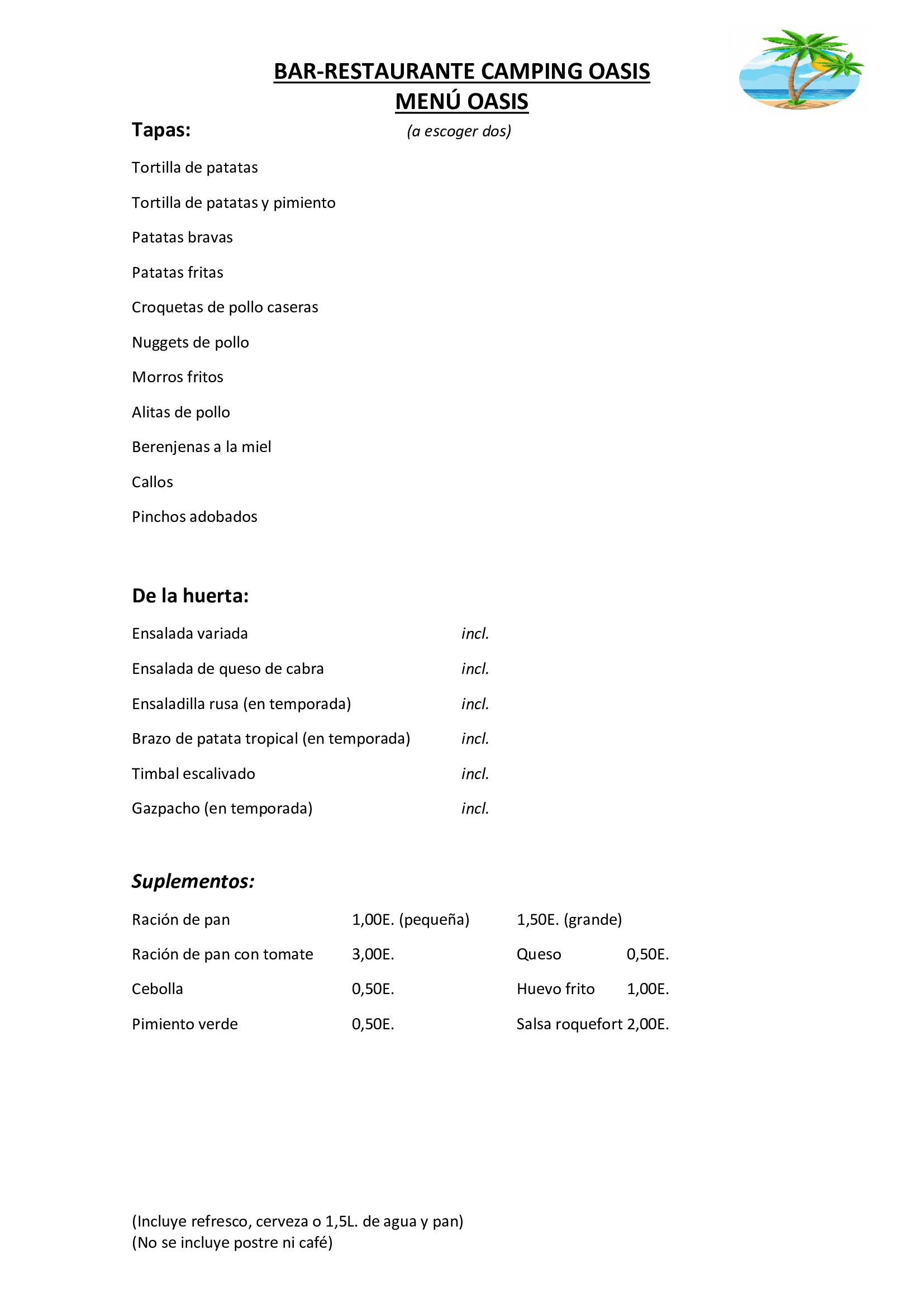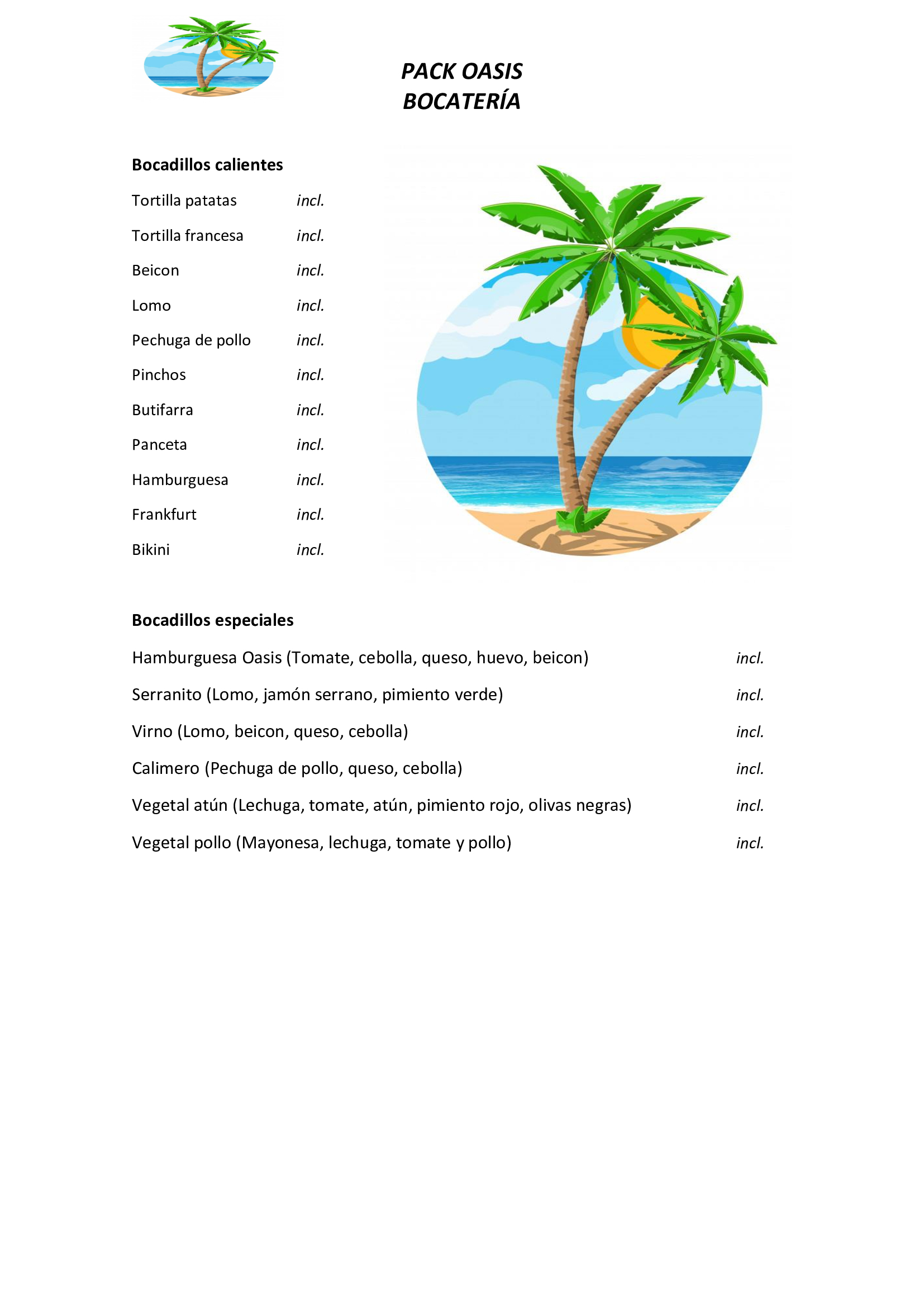 - Menú Pack Oasis